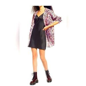 Nordstrom BP. BE PROUD Pride Gender Inclusive PINK BOUQUET RETRO ZEBRA Button-Up Shirt SZ S