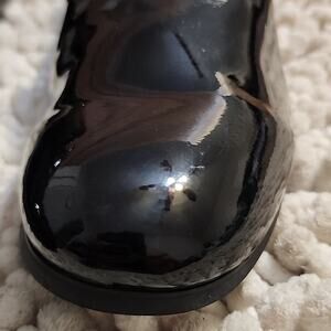 THESE BP PATENT BLACK FAUX LEATHER LOAFERS ARE NEW WITH NO BOX AND NO FLAWS. THE COLORWAY IS A BLACK SHINY BRILLIANT COLOR. THE SHOES ARE CUSHIONED INSOLES FOR A COMFORTABLE CASUAL ALL DAY LONG GOOD FEELING.