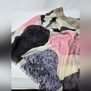 BP BRASS PLUM LIGHTWEIGHT SCARF SHAWL WRAP BLACK PINK PURPLE ABSTRACT WOMEN OS