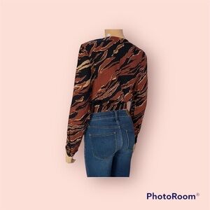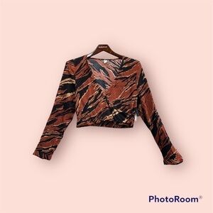BP BURNED OUT TIGER STRIPED LONG SLEEVE CROPPED BLOUSE XS NEW NO TAGS
