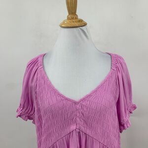 BP Babydoll Shirred Crop Top Womens L Purple Tulip Ruched Puff Sleeve Peplum