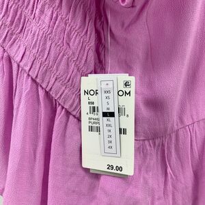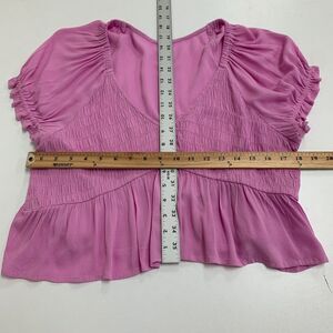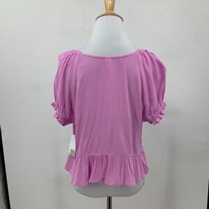BP BABYDOLL SHIRRED CROP TOP WOMENS L PURPLE TULIP RUCHED PUFF SLEEVE PEPLUM