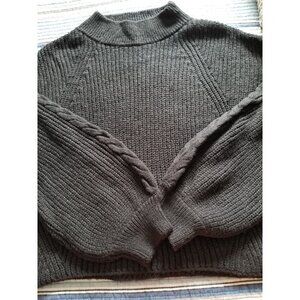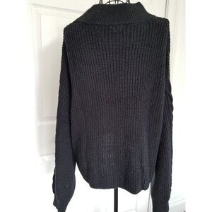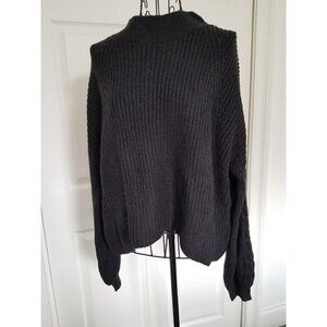 BP Black Chunky Knit Cropped Long Sleeve Oversized Sweater Mock Neck Womens Sz L
