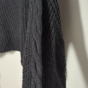 Black, cable knit, mock turtleneck cropped sweater. Cute texture on the sleeves.