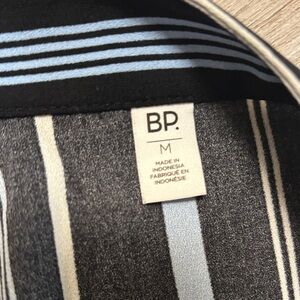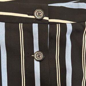 Stylish pencil skirt with bold black and blue stripes. Features a button-front design. Perfect for versatile wear.