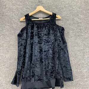 BP. Blouse Women L Large Black Sleeveless Wide Strap Round Neck Velvet Casual