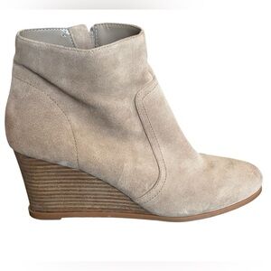 BP Boots Womens 11 M Block Wedge Ankle Bootie RN58665 Taupe Suede Leather Heels