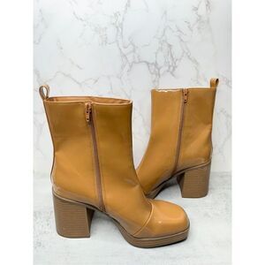 BP Boots Womens Size 10 Brown Platform Block Heel Ankle Booties Side Zip