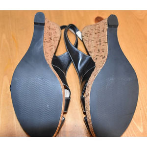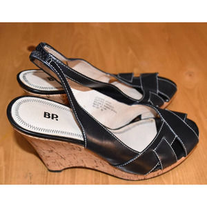 BP, Brass Plum, Basket Weave Black Sling back Wedge Heels, NWOT, 7