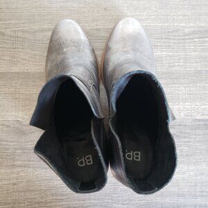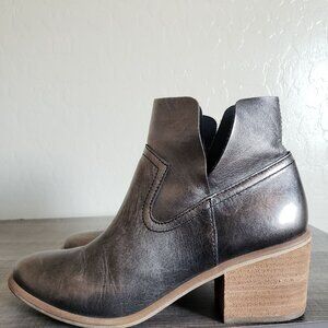 BP Brice Notched Metallic Silver Leather Ankle Booties Women's 8 Western Cowgirl