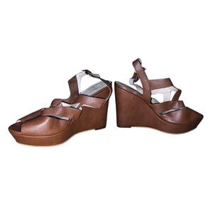 BP Brown Strappy Open Peeop Toe Wedge Sandals Sz 8 M Womens Brown