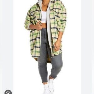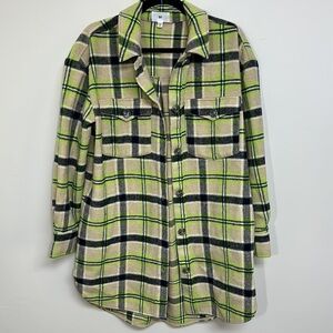 BP Brushed Plaid Oversize Shirt Jacket in Tan Ravenwood Plaid Medium