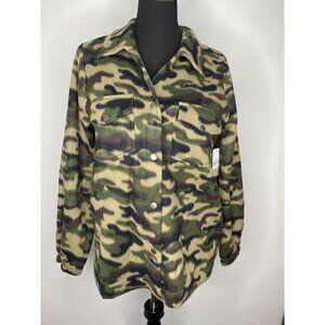 BP Camo Womens MEDIUM Button Down Fleece Pockets Multicolored Long Sleeve Jacket