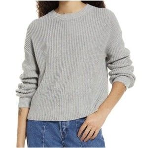 BP Cleo Sweater Women's Size S Grey Heather Chunky Rib Knit Cotton Crop Crewneck