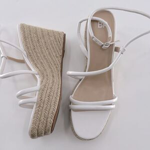 BP Cohan Espadrille Platform Wedge Straappy White Sandal