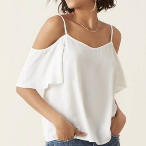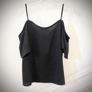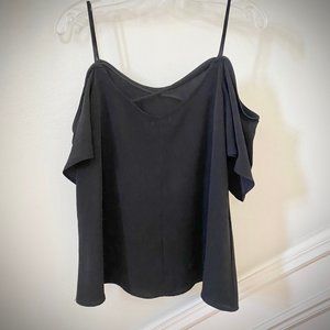 This top from Nordstrom is in perfect condition. Lightweight and flowy top in polyester features fluttery sleeves and a criss-cross detail in back. Crepe fabric looks and feels like silk! Sleeves can be tucked inside top for a cami style alternative. Spaghetti straps. Machine wash. Fits slightly large. No flaws.