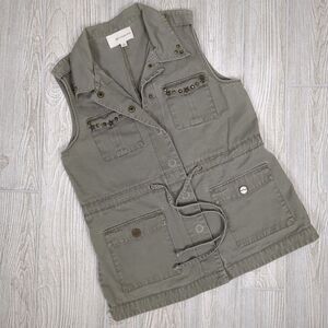 BP Collection Women’s Small Army Green 100% Cotton Belted Sleeveless Jacket Vest