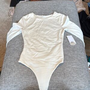 BP Cream Long Sleeve Bodysuit with Textured Fabric