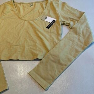BP Crop Top Long Sleeve Organic Cotton Blend Scoop Neck Beige Womens M