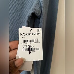 BP Crop Top Rib Knit Crewneck Long Sleeve Button Up Front Color Blue Sz XL NWT