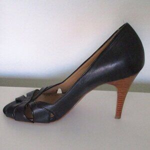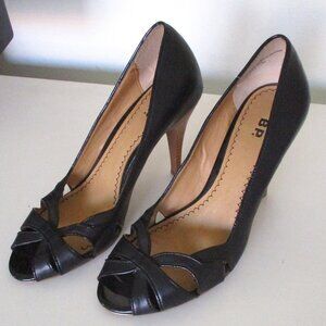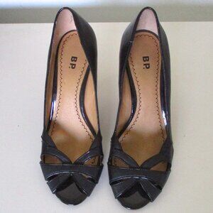 BP. "Daniella" Womens Black Leather Open Toe Pump w/3.5" Heel - Size 6M