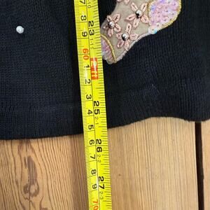 BP Design Vintage Christmas Cardigan Collared Beaded Stocking Black XL Cotton