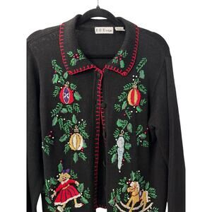 warm, sweater, cardigan, vintage, VTC, retro, 80s, 90s, 2000s, y2k, holiday, christmas, doll, bell, ornament, rocking horse,
