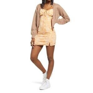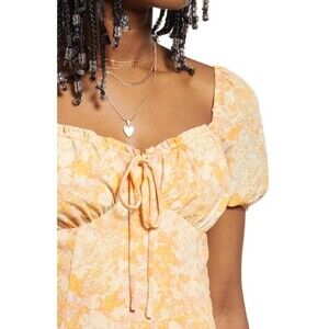BP Ditsy Floral Tie Front Minidress In Yellow Crosshatch Meadow Orange Small