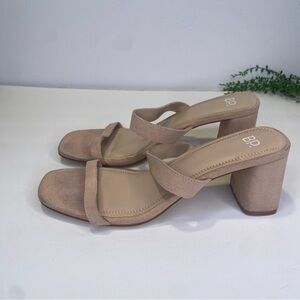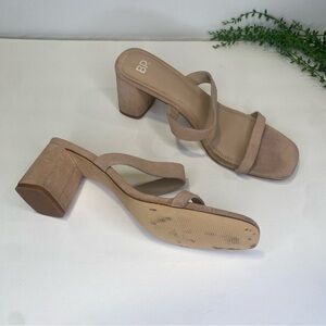 BP. Emmie Lea Suede Strappy Square Toe Heeled Slide Sandals Beige Size 9.5M