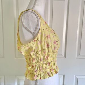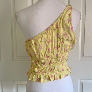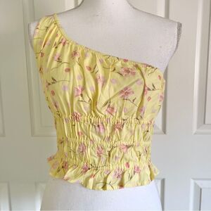 BP FLORAL ONE-SHOULDER CROP TOP IN YELLOW LEMONADE SOPHIE FLORAL Medium NWOT