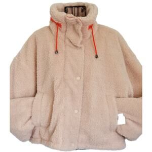 Look cool and feel cozy in this boxy insulated jacket of soft faux shearling styled with neon trim and a wide collar that can be worn up or spread out. The collar also boasts a matching neon drawstring that can be tightened to keep out any drafts.