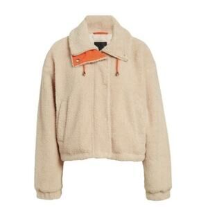 BP. Faux Fur Cropped Zip Front Bomber Jacket Sz XL/Extra Large in Beige NWT