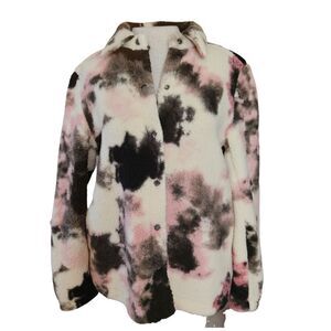BP ivory, brown and pink, tye dye fuzzy, teddy jacket with snap front.