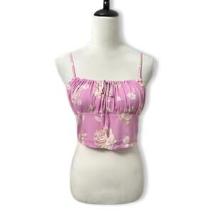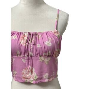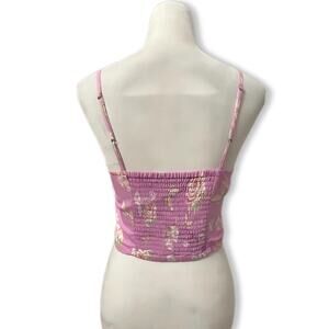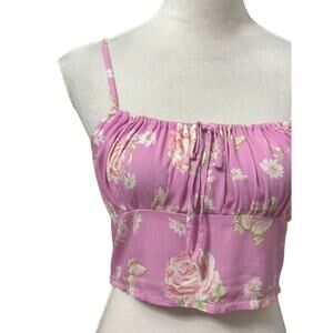 BP Floral Crop Tank Top Spaghetti Strap Ruched Straight Neck Pink Women's S NWOT