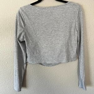 BP. Grey Ribbed Button Front Cropped Long Sleeve Top With Undershirt Cami Lrg