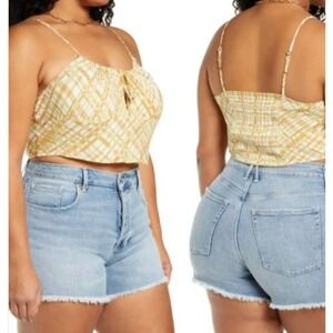 The BP Happy Plaid Cropped Camisole is a versatile addition to any wardrobe, featuring a stylish plaid pattern with neon green accents for a fresh touch. Perfectly crafted with a smocked back and adjustable straps for a comfortable fit.