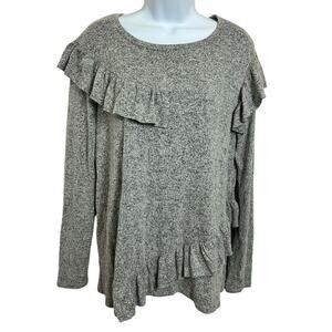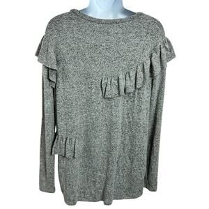 BP. Heather Gray Ruffle Blouse Sz Small Long-Sleeve Soft Pullover Top Casual