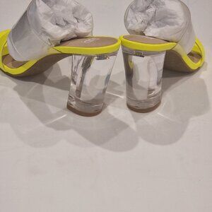 Neon Yellow A clear strap brings night-out appeal to a chic slide sandal lifted by a transparent lucite heel Synthetic upper, lining and sole worn outside