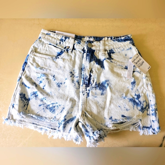 Blue Bleached Wash high rise short. Size 28