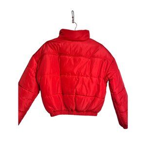 Stay warm and stylish in BP's XXS red high neck puffer coat. With a full front zip and vibrant poinsettia shade, this coat is a winter must-have.
