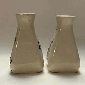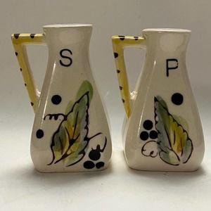 MCM salt and pepper shakers hand-painted with a leaf and berry design. Made of ceramic. Very good condition.