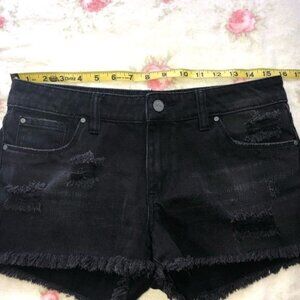 Excellent condition frayed and distressed black shorts firm BP size 26. Measurements: 15.5” across the waist, 9” from crotch seam to top of waist.