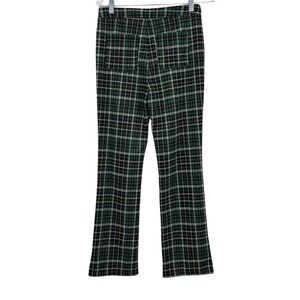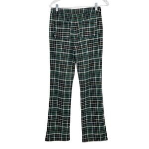 An exposed zipper segments the front of cool plaid pants that end stylishly at slightly abbreviated cuffs.