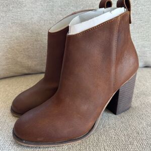 BP Lance Block Heel Bootie Leather Cognac Brown Size 8