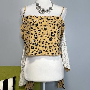 BP Leopard Animal Print Crop Top Twin Set Tank & Button Up NEW XL