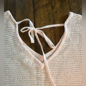 Good used condition, a little snag in the back(just a wider hole). Ties on the back. Shorter up front and longer in the back.