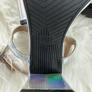 BP Lula Ankle Strap Block Heel Sandals in Silver Holographic