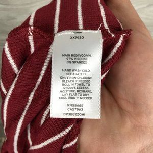 Slim stripes circle a soft and stretchy knit tank styled with an alluringly rounded V neckline.