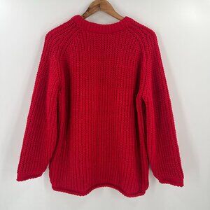 BP Medium Red Fisherman Knit Sweater Fuzzy Chenille Crewneck Christmas Holiday