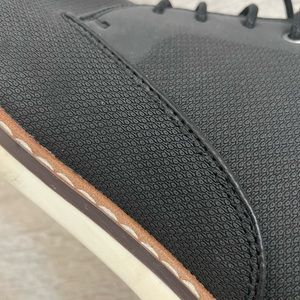 A subtle grid patterns the vamp of this mixed-media derby with a cushy padded collar and sporty rubber sole for added versatility.